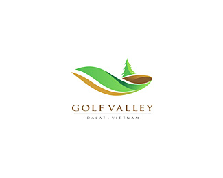 GOLFVALLEY高爾夫俱樂部標志,以寫實的方式進行主創(chuàng)意圖形的設計,整體以綠色和棕色為主色系。
